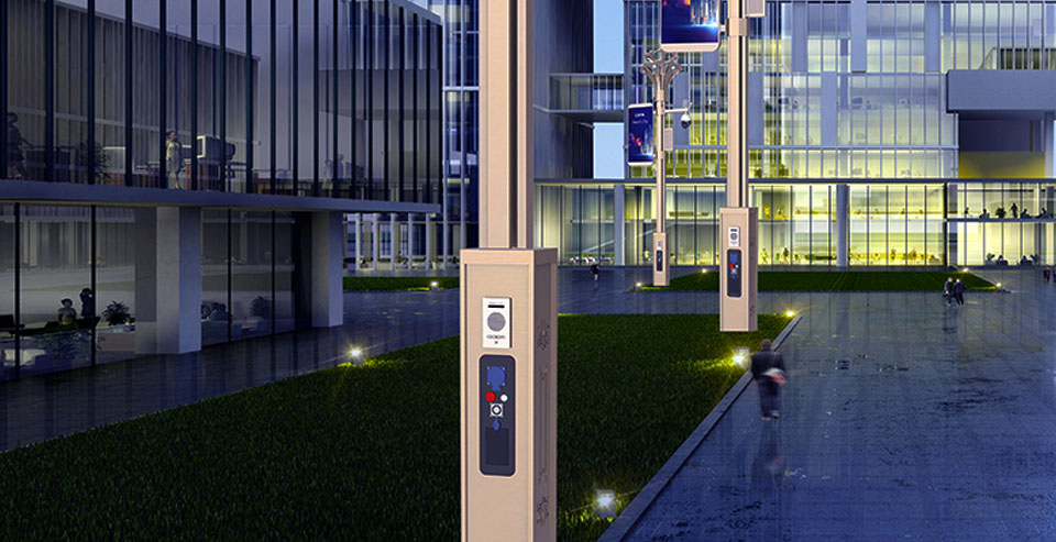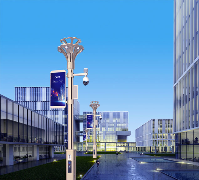 基于庭院主灯型、加载智能设备和传感器扩展多功能型景观庭院灯。