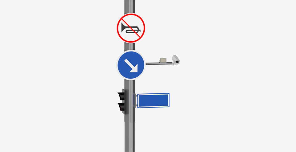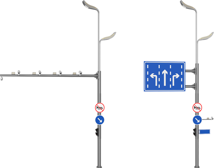 基于智慧主灯型,扩展多功能综合杆,如监控合杆、道路标识牌合杆、交通信号合杆。